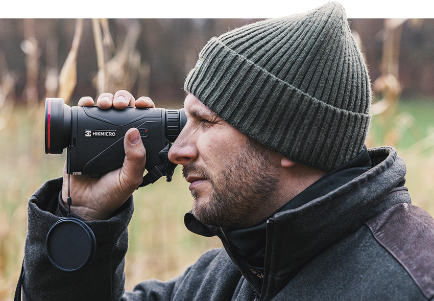 La distancia a la presa es esencial para un disparo seguro. El telémetro láser integrado en el monocular térmico HIKMICRO CONDOR LRF 2.0 permite medir distancias de hasta 1000 metros con una precisión de ±1 metro en diversas situaciones, lo que proporciona la medición más precisa de la situación. En la última versión de visualización de distancia, HIKMICRO también ha introducido una opción para la distancia horizontal, además de la distancia en línea recta, para realizar evaluaciones más precisas, especialmente en la caza alpina.