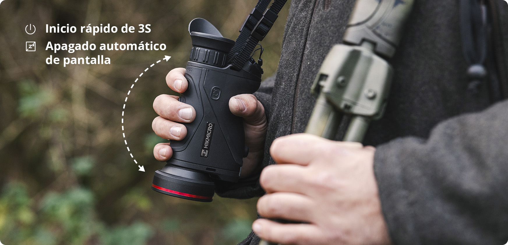 Los cazadores siempre están en movimiento, pero no siempre tienen sus dispositivos a mano. El HIKMICRO CONDOR LRF 2.0 puede llevarse en un bolso para monocular, sujetado a la muñeca o colgado del cuello. Con múltiples opciones de transporte, los cazadores pueden elegir el método más cómodo y fiable, asegurando que su compañero de caza esté siempre listo.