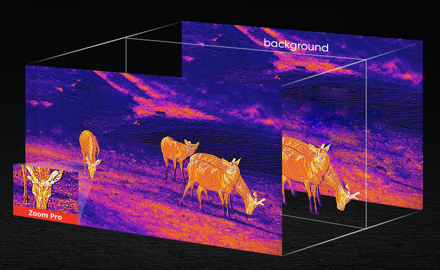 Los algoritmos Image Pro 3.0 y Zoom Pro garantizan que el monocular térmico CONDOR LRF 2.0 ofrezca la mejor calidad de imagen y detalle, ya sea en escenarios de observación de corto o largo alcance.