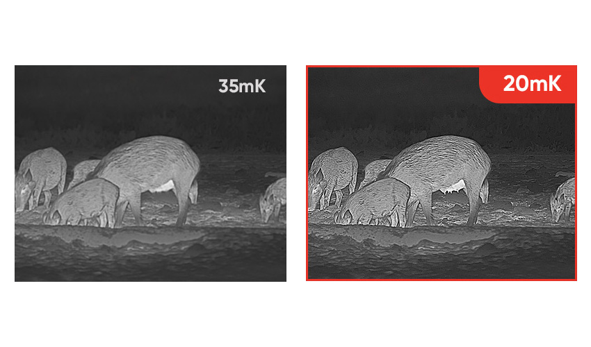 La alta sensibilidad térmica garantiza un reconocimiento perfecto de los detalles incluso en las condiciones climáticas más duras, cuando el objetivo y el fondo tienen una diferencia de temperatura mínima. Además, la delgada película de óxido de vanadio de alto TCR, desarrollado por nosotros, mejora considerablemente la sensibilidad. Se pueden identificar con claridad los detalles más pequeños del objetivo y el fondo.