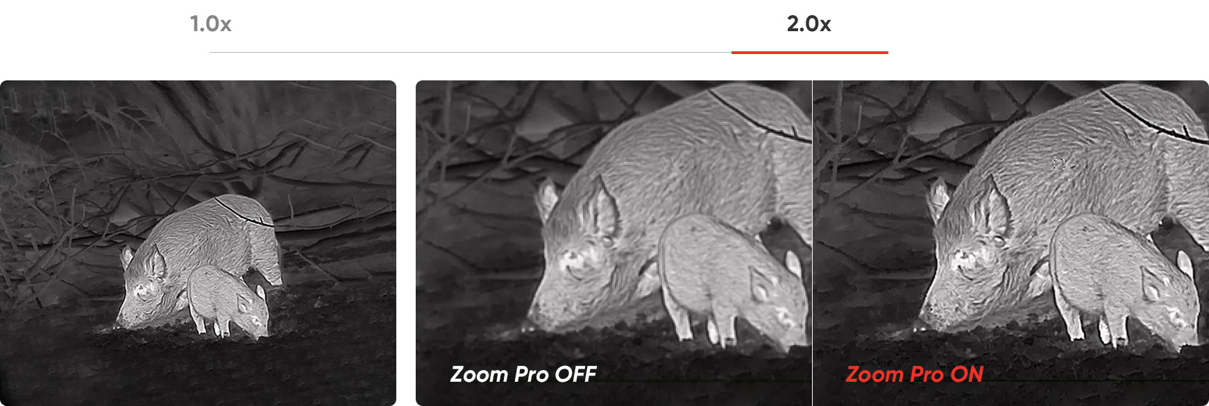 Basado en un análisis exhaustivo de imágenes de caza térmica, el algoritmo de imagen Zoom Pro desarrollado por HIKMICRO brinda a HABROK imágenes ultra claras con detalles impresionantes y menos pixelación, especialmente con zoom digital.