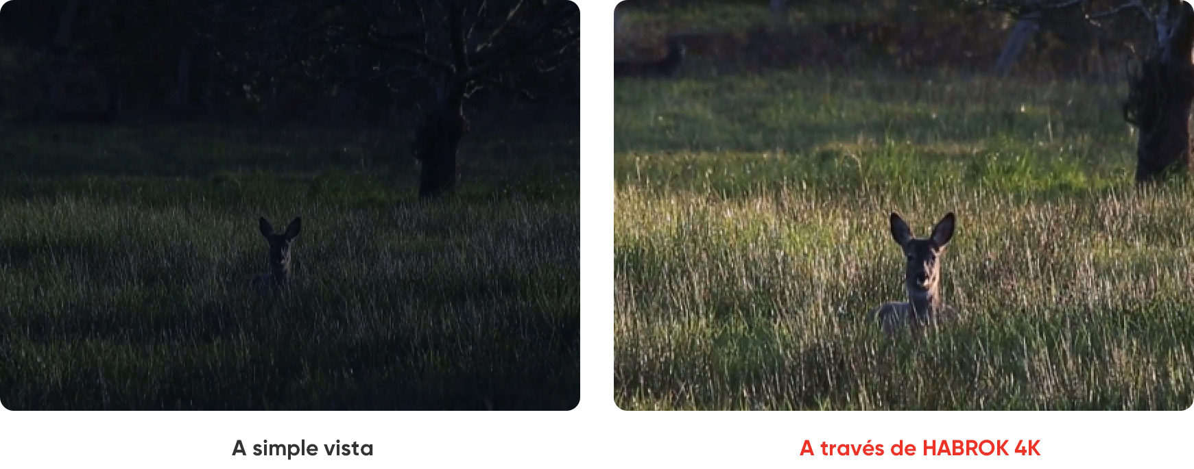 El detector 4K UHD a todo color de alta tecnología de HABROK 4K ofrece una nitidez excepcional durante el día, incluso al anochecer, lo que le proporciona esos minutos extra que necesita durante la jornada de caza.