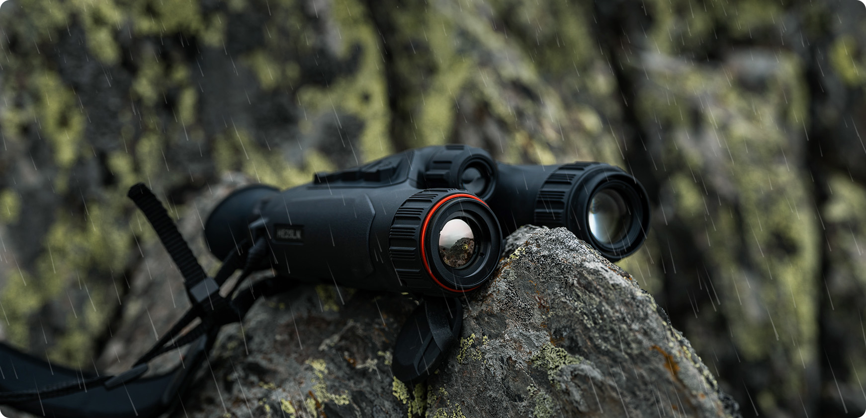 El binocular multiespectro HABROK 4K proporciona detalles impresionantes incluso en terrenos difíciles gracias a la anilla de enfoque para objetivos térmicos y digitales. También podrá enfocar con gran precisión, incluso llevando guantes.